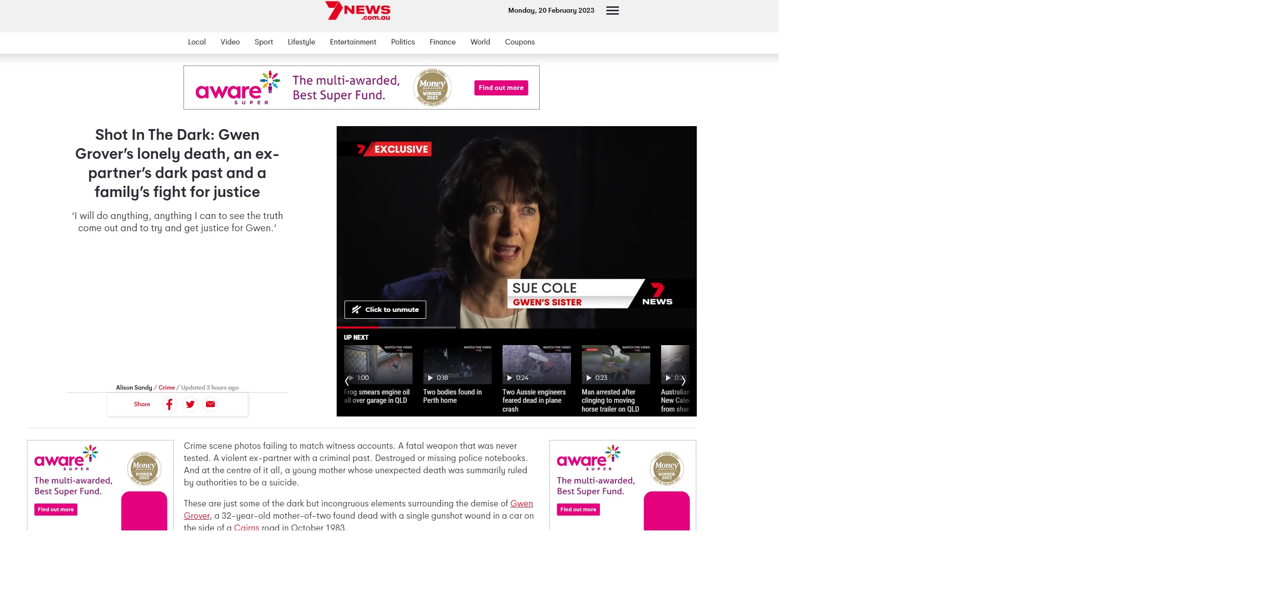 Court rule in cold case death of Gwen Grover featured in hit 7NEWS podcast, Shot in the Dark