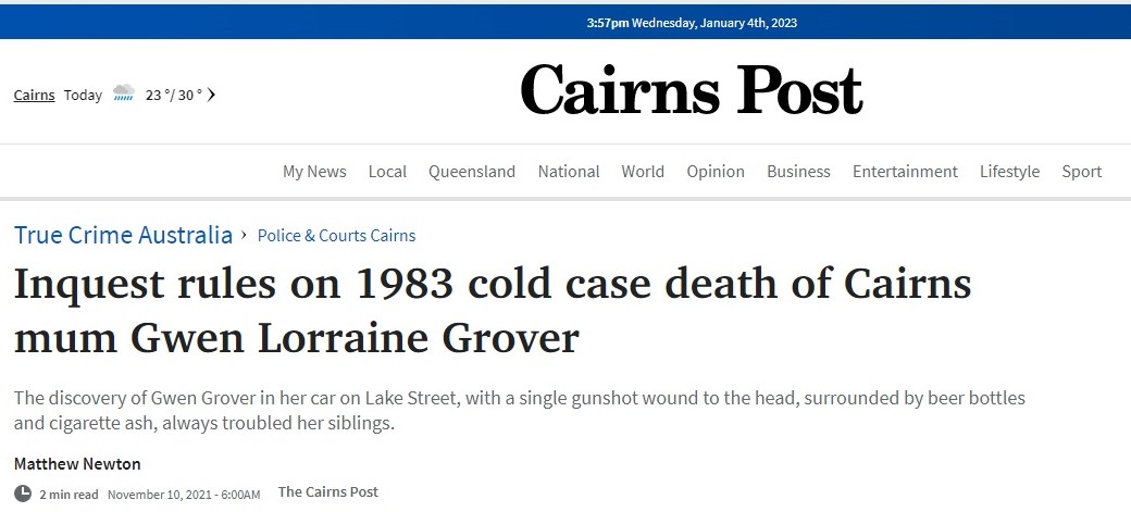 Inquest rules on 1983 cold case death of Cairns mum Gwen Lorraine Grover
